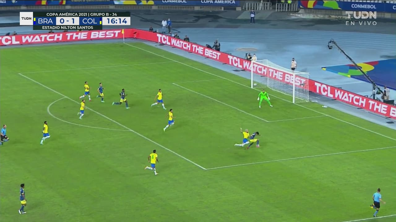Un contragolpe rapidísimo de Colombia tuvo que ser contrarrestado por el astro brasileño.
