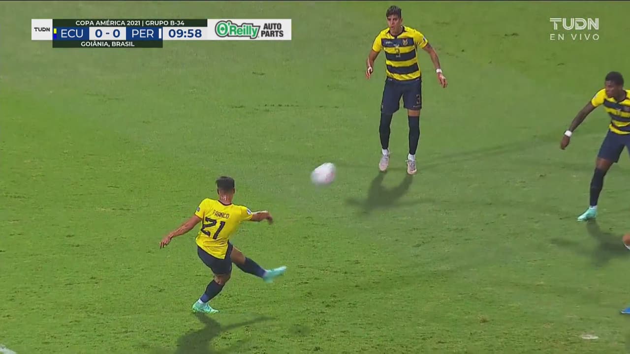 ¡Se arriesga Ecuador! Alan Franco saca volea pero sale a las nubes