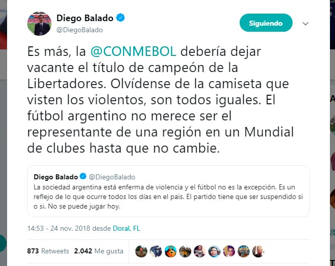 Los argumentos y los incisos del reglamento que en ese momento le expuso la Conmebol a la directiva de Boca Juniors son los mismos que ahora salen a relucir: “Las Asociaciones Miembro y clubes son responsables de la seguridad y del orden tanto en el interior como en las inmediaciones del estadio, antes, durante y después del partido del cual sean anfitriones u organizadores. Esta responsabilidad se extiende a todos los incidentes que de cualquier naturaleza pudieran suceder, encontrándose por ello expuestos a la imposición de las sanciones disciplinarias y cumplimiento de las órdenes e instrucciones que pudieran adoptarse por los órganos judiciales”, dice el reglamento en el inciso 8.2.