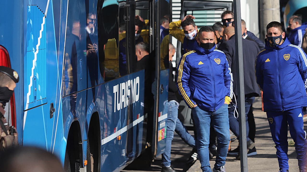 Los jugadores de Boca Juniors pasaron la noche en un autobús estacionado junto a una estación de policía en la ciudad brasileña de Belo Horizonte.