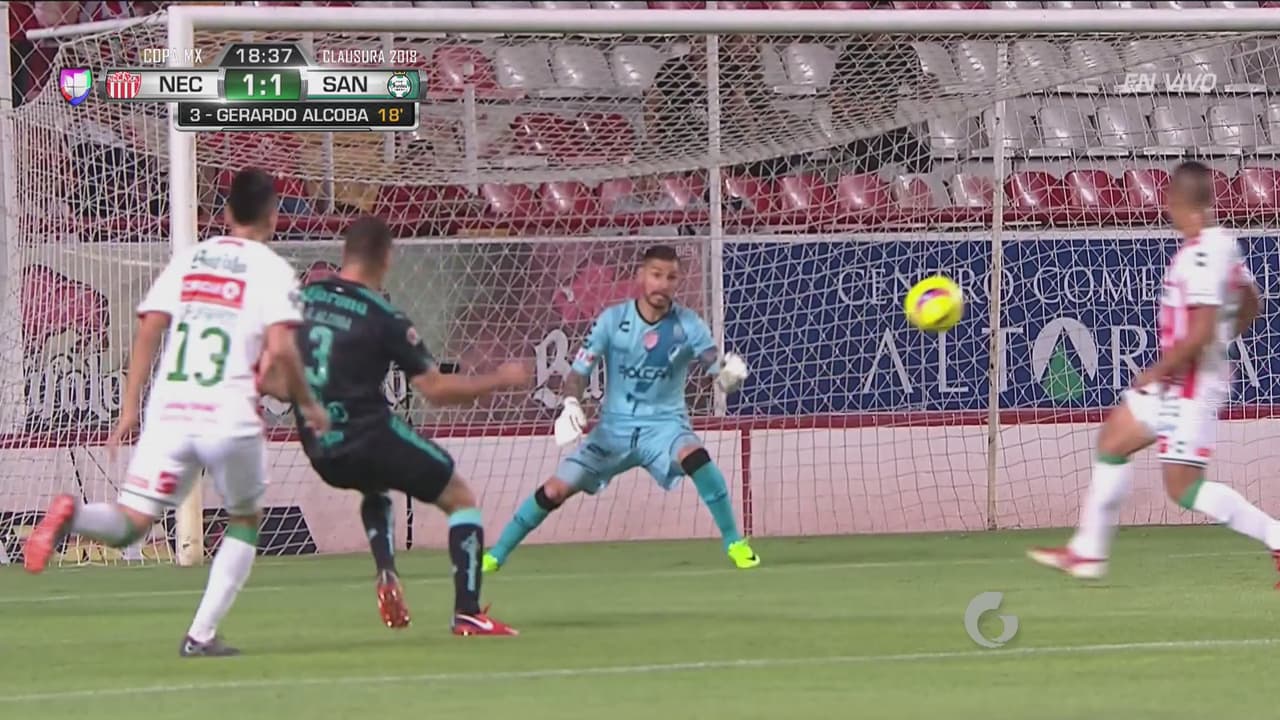 Gerardo Alcoba realizó una pared con Brian Lozano y el defensor lagunero colocó la pelota en el ángulo para el 1-1 ante Necaxa.