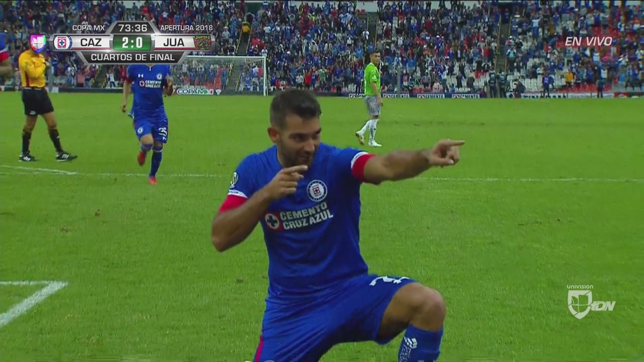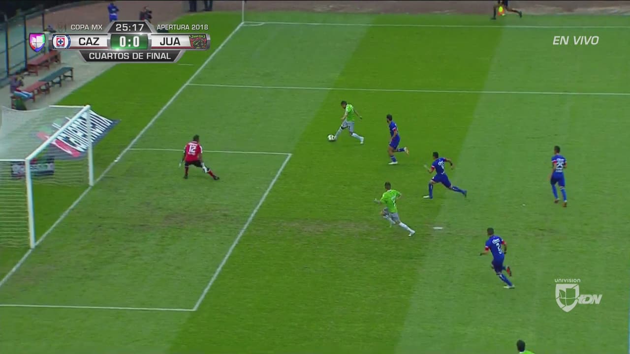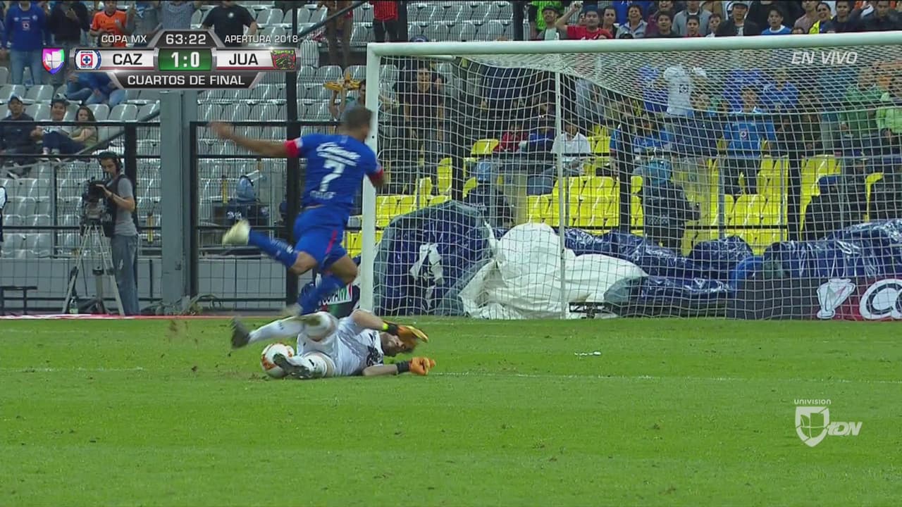 Al 60' Cruz Azul se fue al frente. Alvarado llegó a línea de fondo y tiró la diagonal a Caraglio quien disparó mal y en el rebote la pelota le quedó al 'Piojo' que empujó la pelota a primer palo y adelantó a su escuadra.