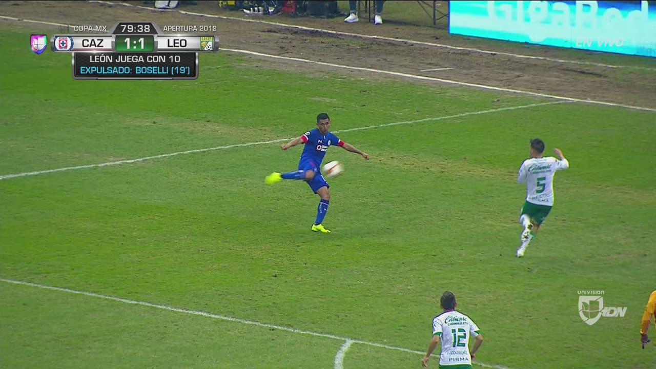 El mediocampista de Cruz Azul empalmó el balón sin dejarlo caer y estuvo cerca de poner en ventaja a su equipo ante León.