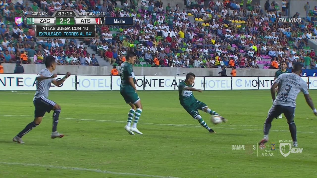 Se encuentra un balón rechazado a medias en el borde del área y le pega con fuerza para el 2-2 ante Atlas.