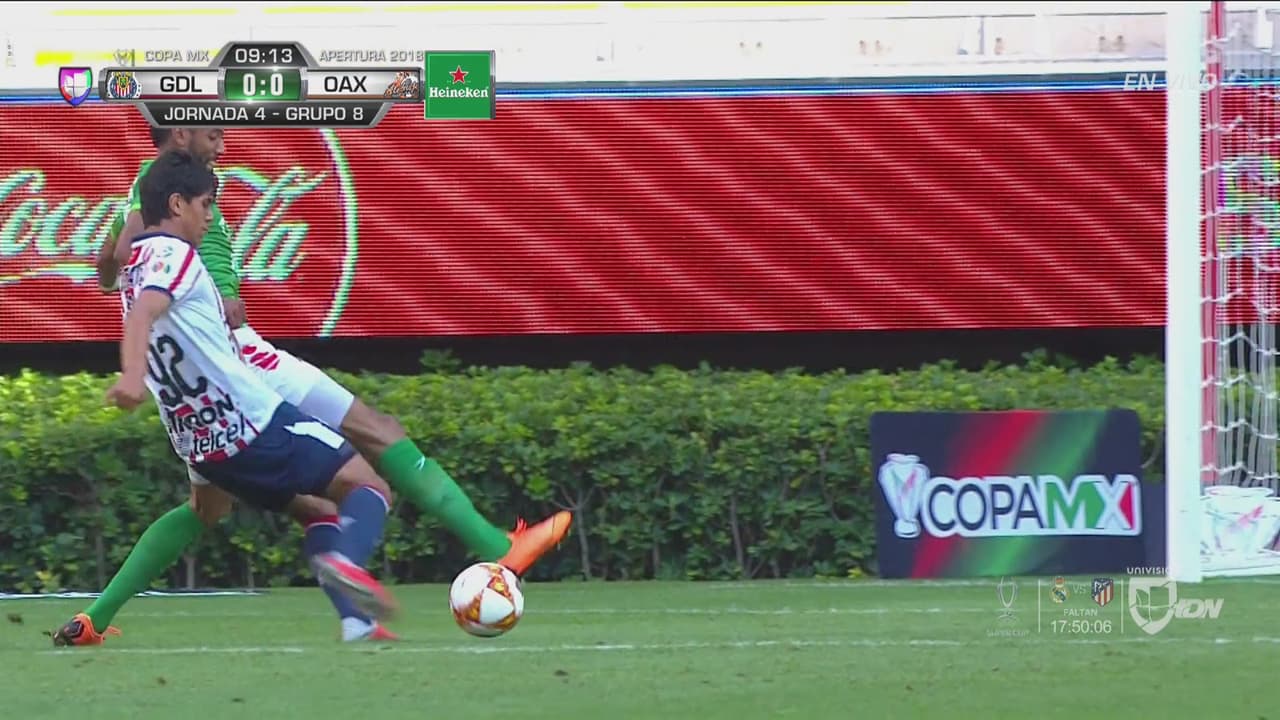 José Macías remata de fuera del área y casi cae el primero de Chivas