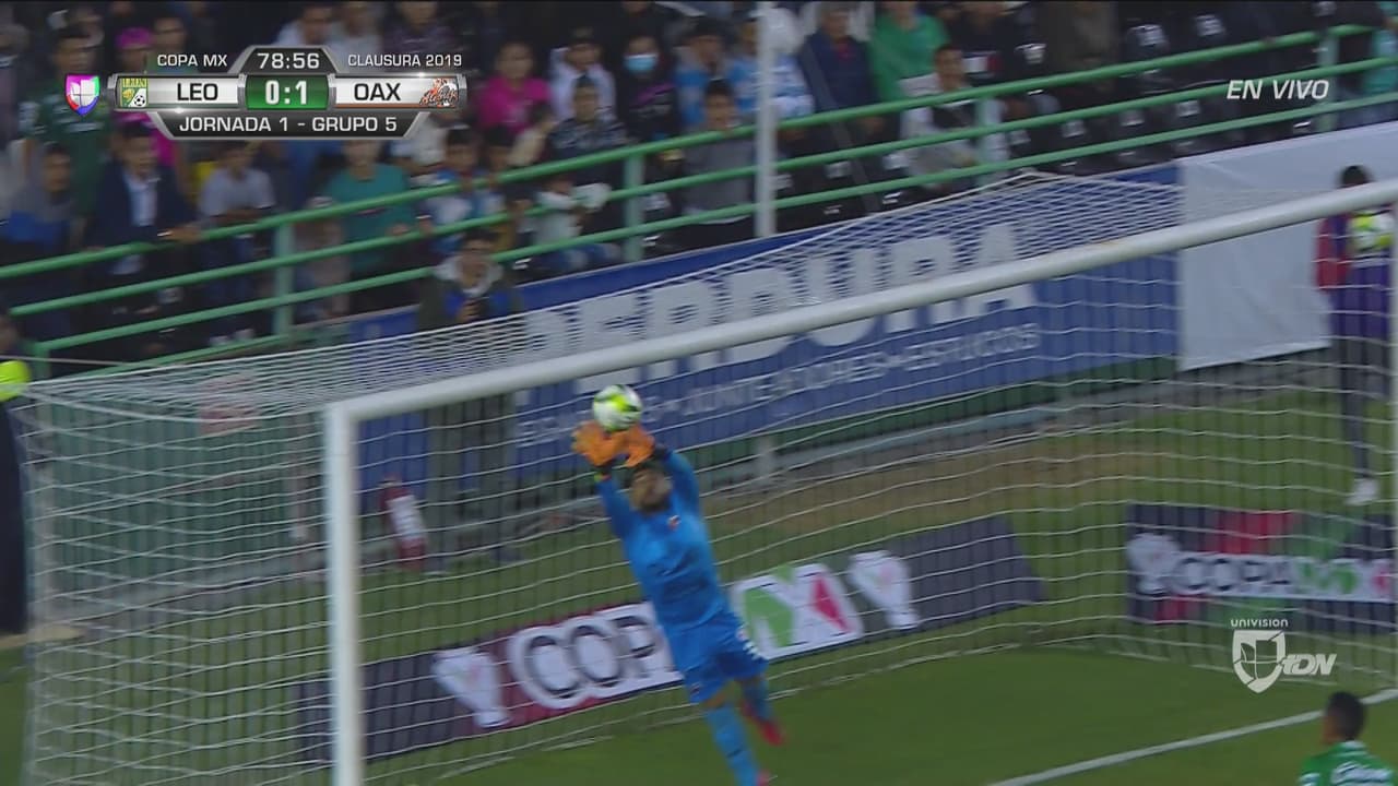 El ‘10’ del León cobró un tiro libre directo con un gran toque pero Luis Robles la desvió al travesaño con algo de fortuna. Alebrijes sigue ganando a poco del final.