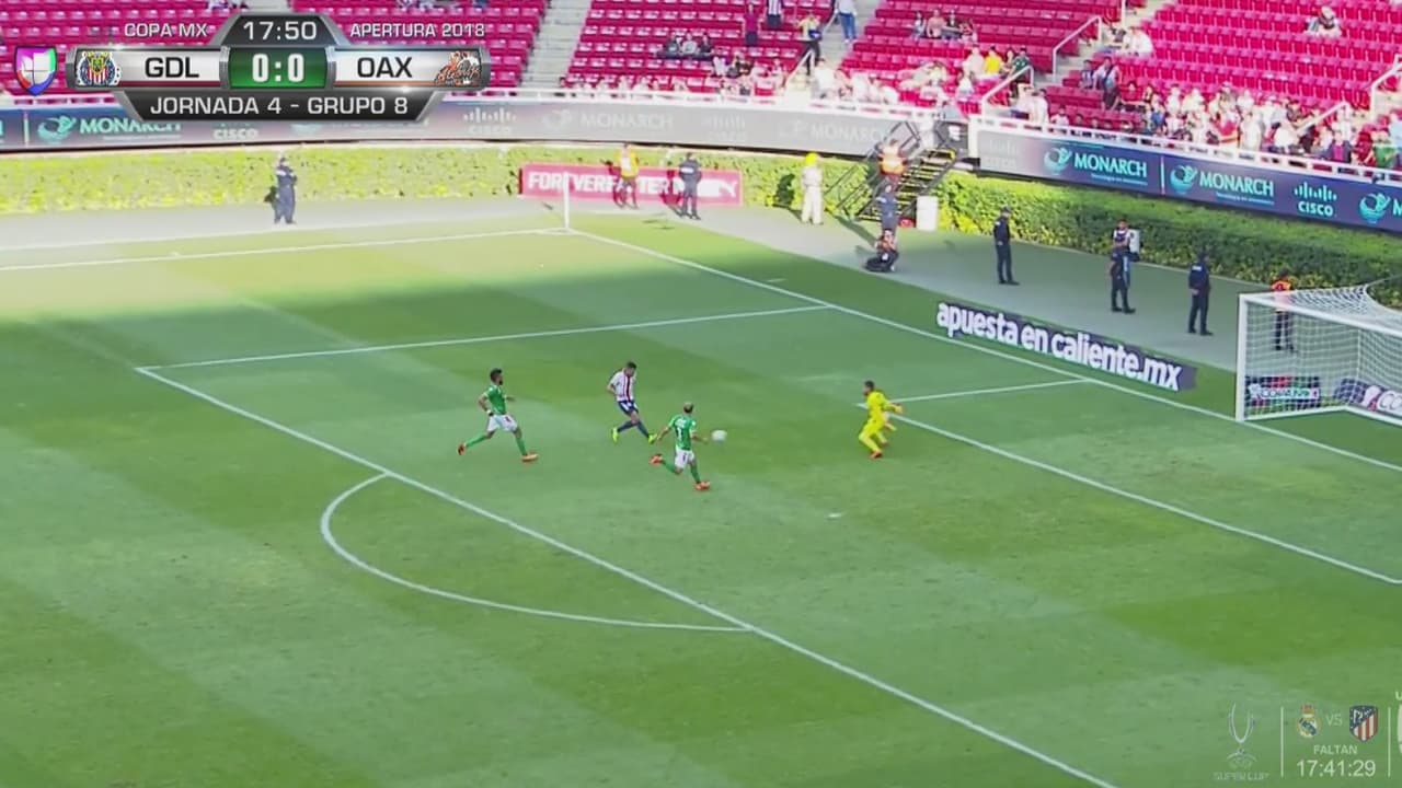 Luego de un error defensivo de Oaxaca, al delantero rojiblanco tuvo todo el tiempo para definir frente a Robles pero la estrelló en el arquero.