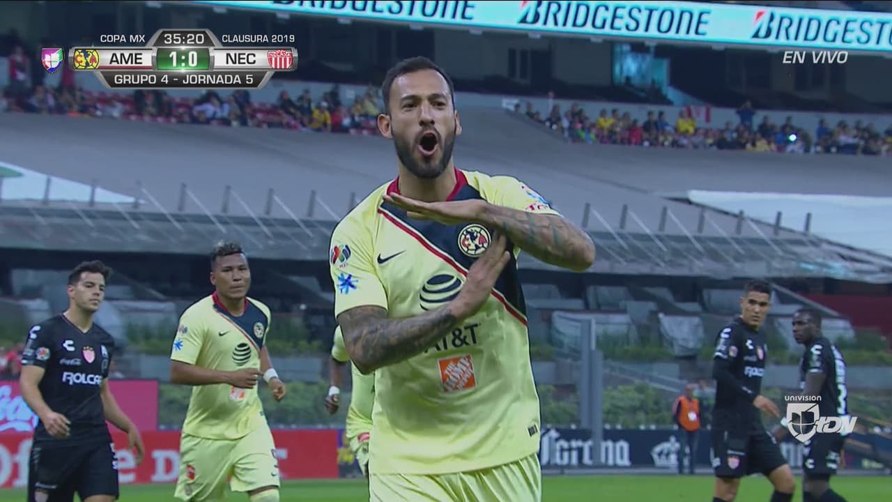 El América avanzó a los octavos de final de la Copa MX al superar 3-1 al Necaxa con una gran presentación de Roger Martínez, autor de un doblete y en el que se produjo el debut del colombiano Nicolás Benedetti.