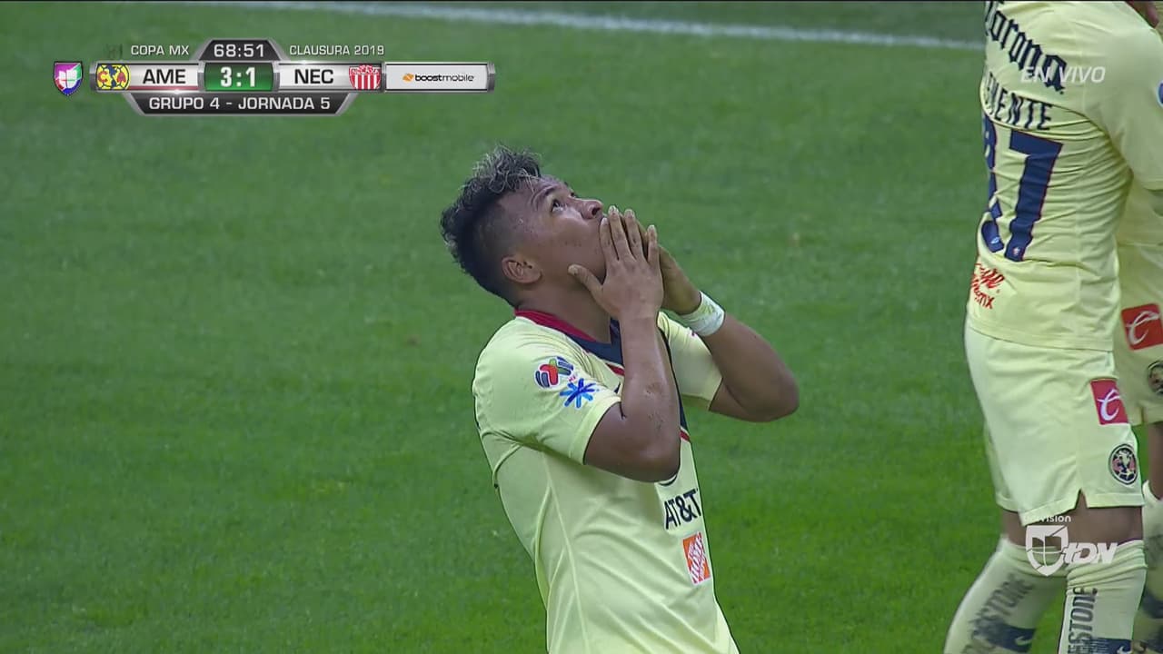 El doblete de Roger Martínez se produciría al culminar de gran forma la jugada que inició Edson Álvarez, sacando un centro al área chica en la que el colombiano la pudo enviar al fondo de la red.