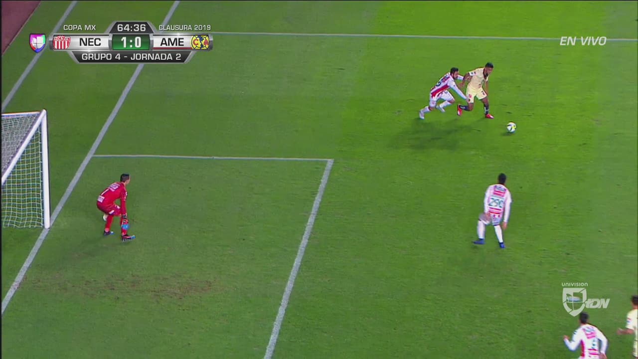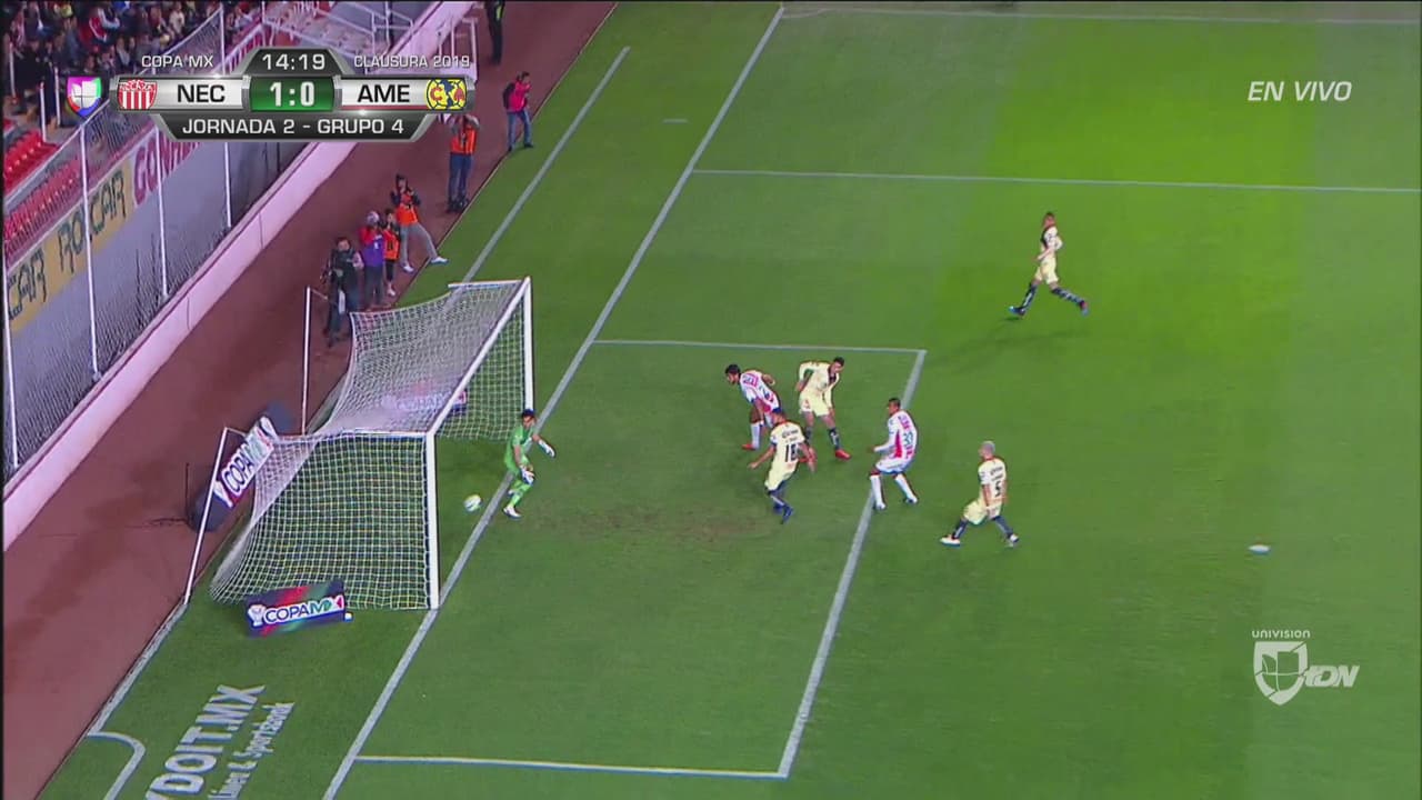 Corría el minuto 62' cuando América superaba a Necaxa. En una pelota parada, Insaurralde cabeceó un servicio aéreo que se estrelló en el poste y salió del campo. Se quedó muy cerca el paraguayo.