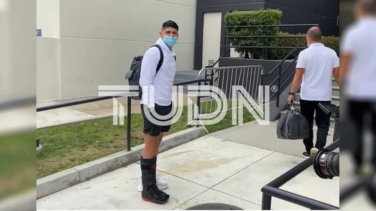 Alan Pulido llega a la concentración de la selección mexicana con una bota