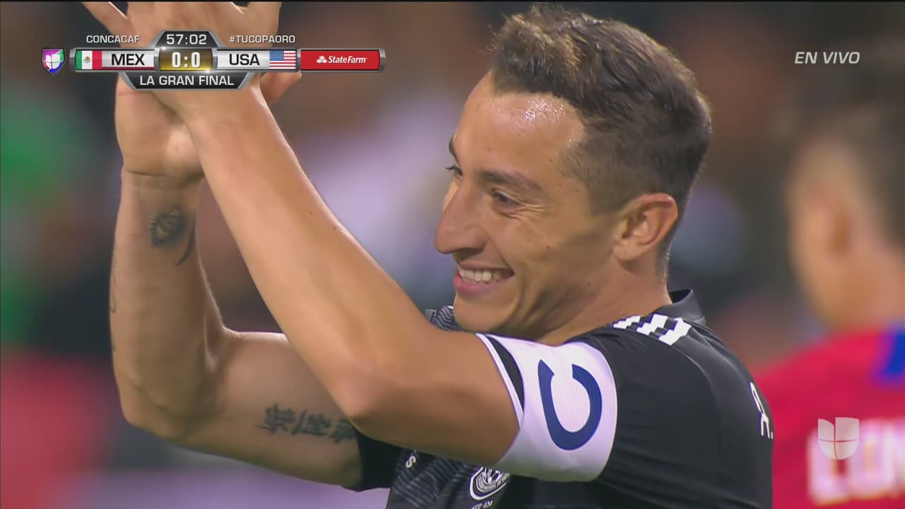 Después de una gran jugada de Antuna por la banda, el capitán mexicano recibió el balón y lo empalmó de primera. Sin embargo, su remate no contó con la dirección deseada.