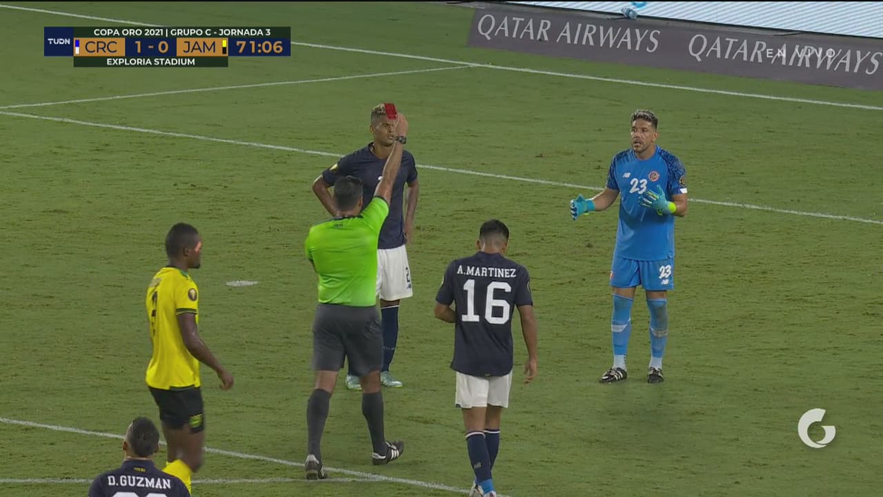 Si de por sí ya era mucho el agobio de Jamaica, Leonel Moreira se fue expulsado al 72' por cortar con falta una jugada manifiesta de gol.