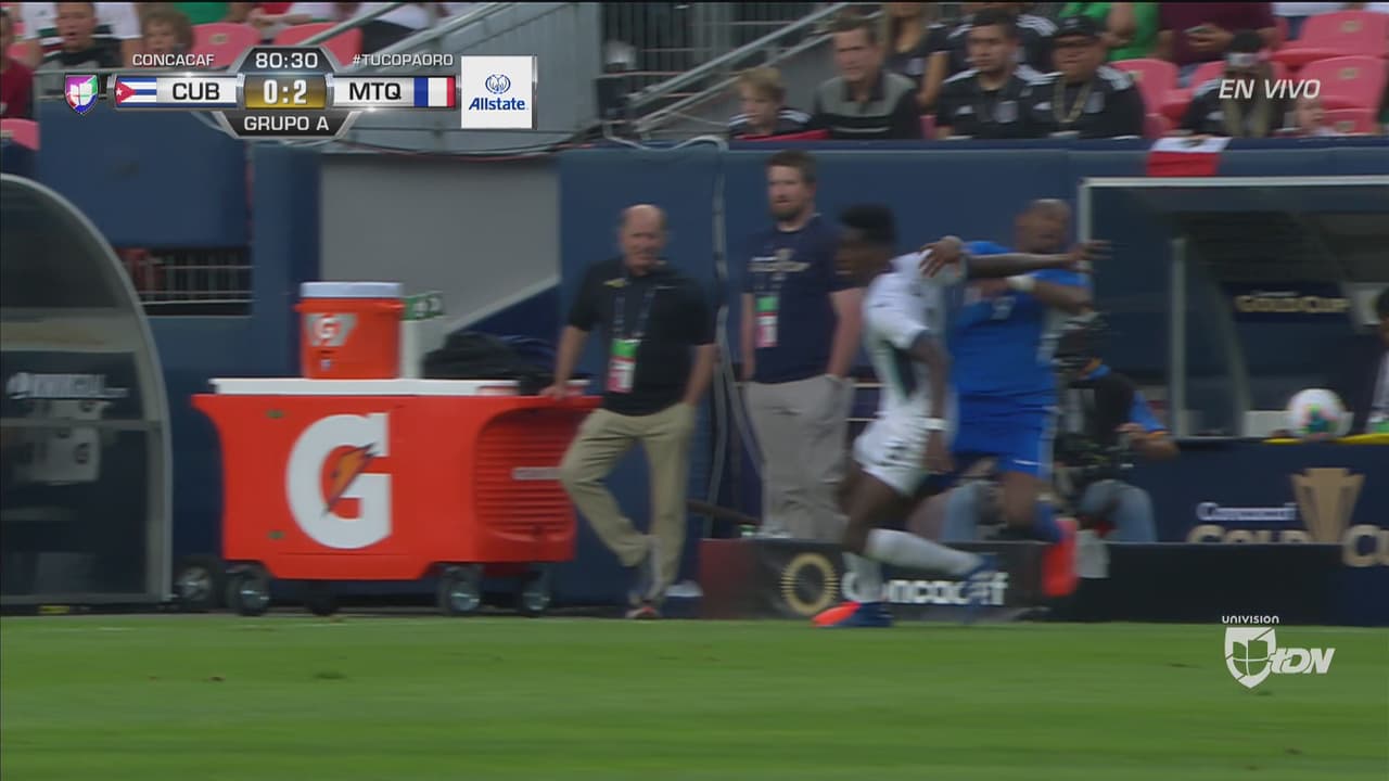 El defensa cubano le tiró un manotazo a un jugador de Martinica y eso le costó la segunda amonestación para ver la tarjeta roja.