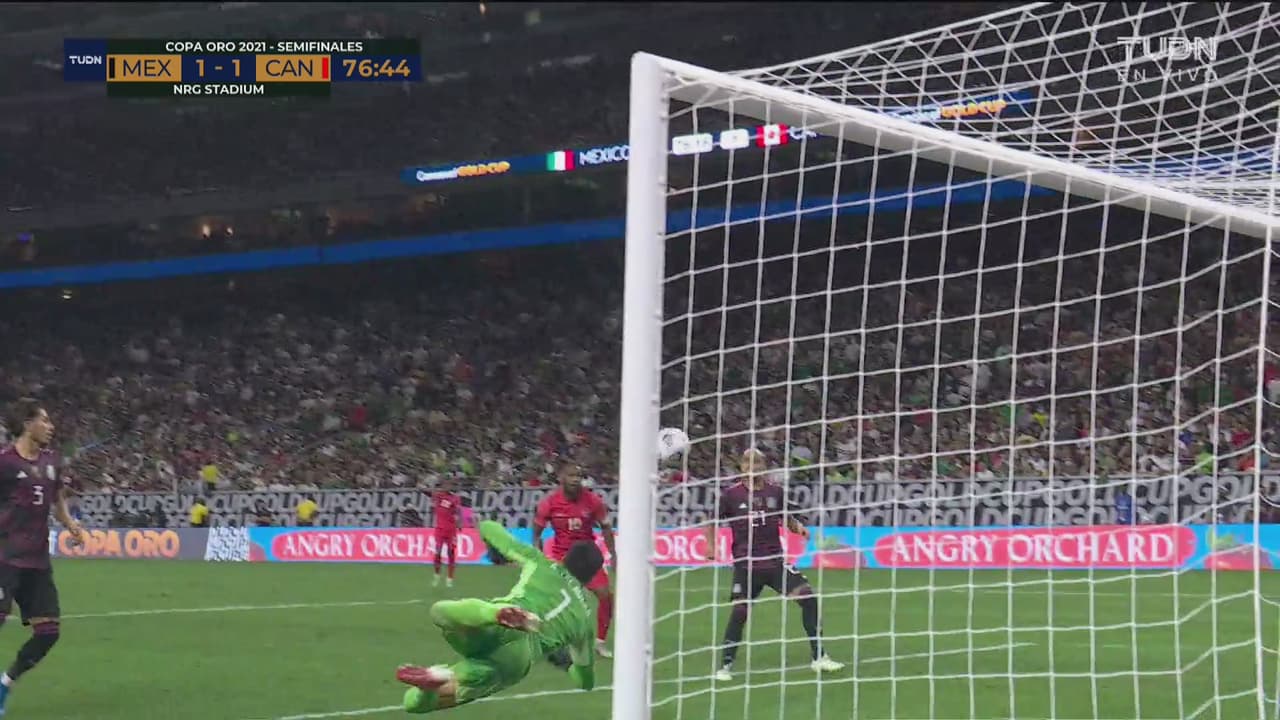 El canadiense entró por la derecha, recortó y disparó de zurda, pero el arquero de México desvió al 77’.