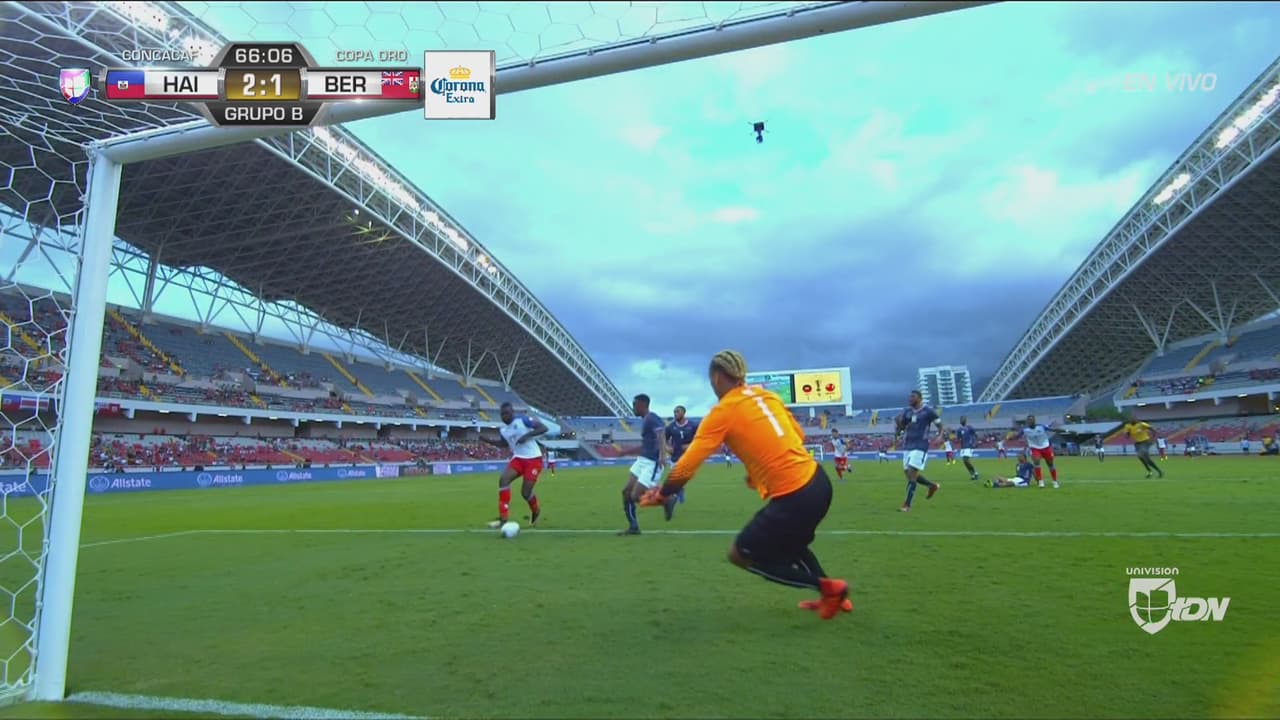 Contragolpe mortal del equipo haitiano que le quedó a Duckens Nazon con tiro raso que escupió el portero Dale Eve y en el rebote Pierrot anotó el segundo.
