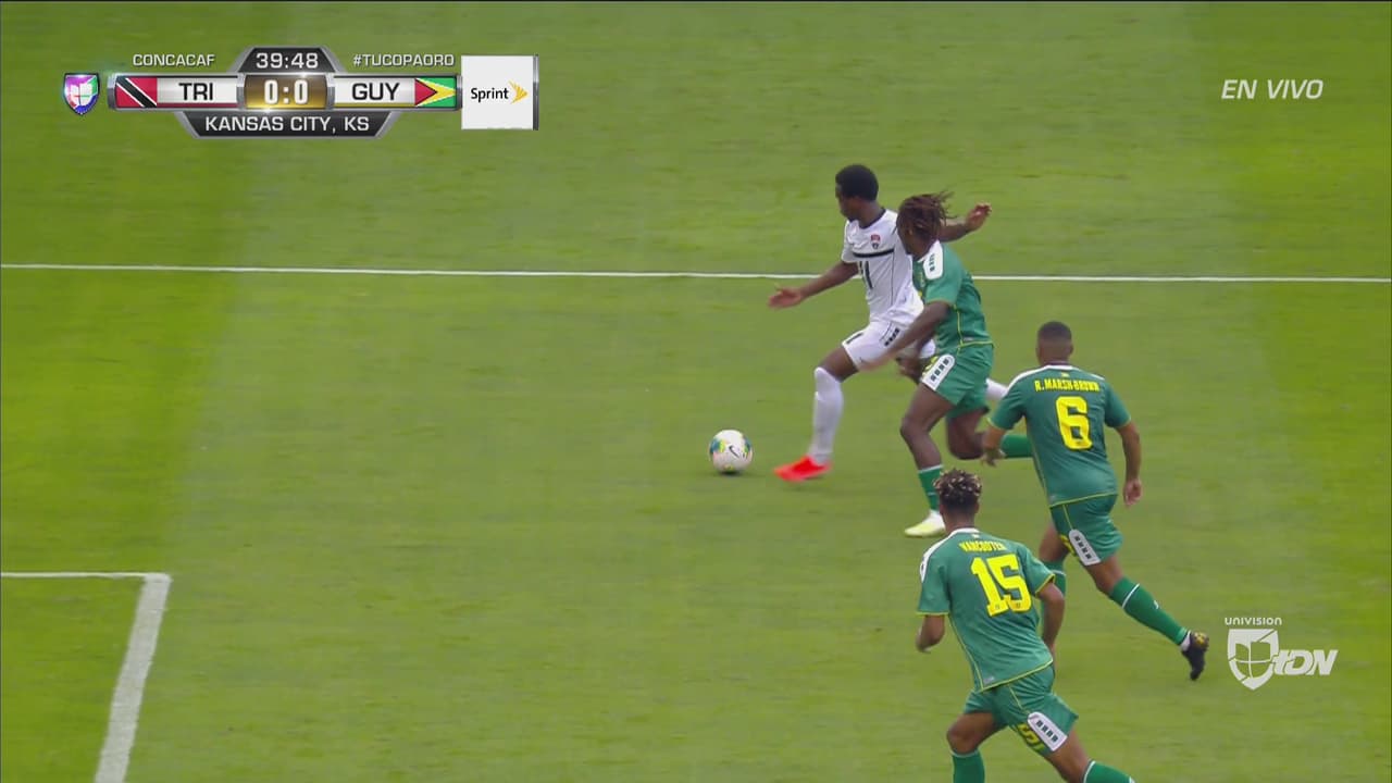El extremo de Trinidad y Tobago ha sido uno de los más destacados en la primera mitad y otra vez hizo daño por la derecha, aunque definió sin idea cuando ya se había quitado al defensa.