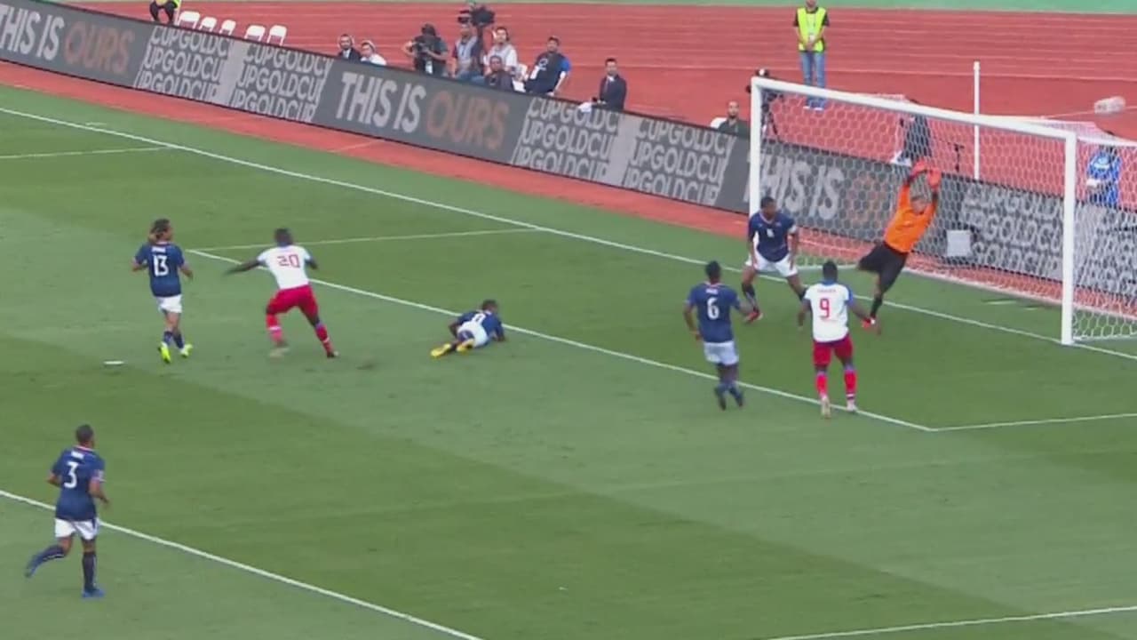 En un contragolpe a velocidad, donde le filtraron la pelota a Duckens Nazon, se juntaron los delanteros haitianos pero Frantzdy la voló de media vuelta con Eve ya vencido.