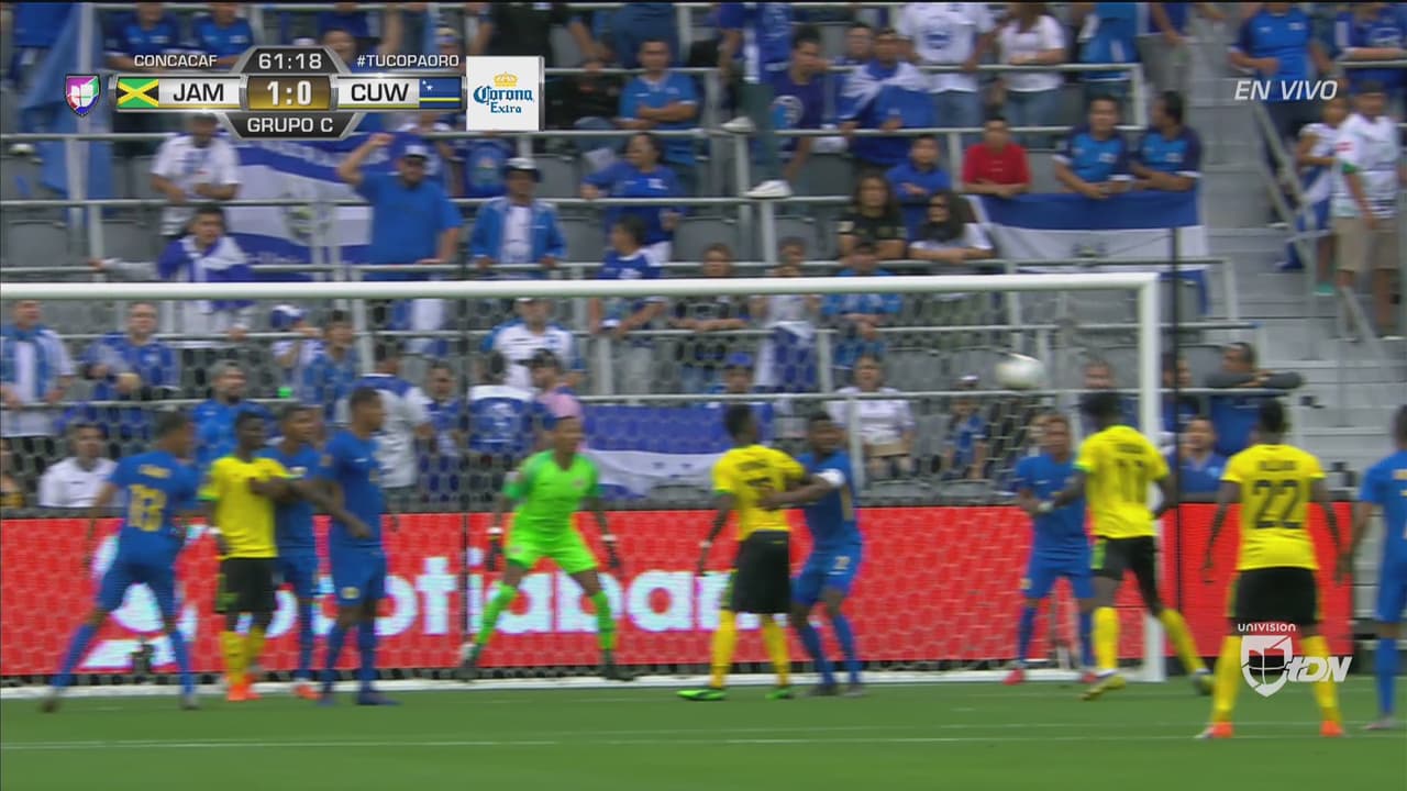 Nicholson ni siquiera tuvo que saltar para rematar de cabeza un tiro de esquina pero mandó la pelota por arriba del arco curazaleño en un 'oso' tremendo en California.