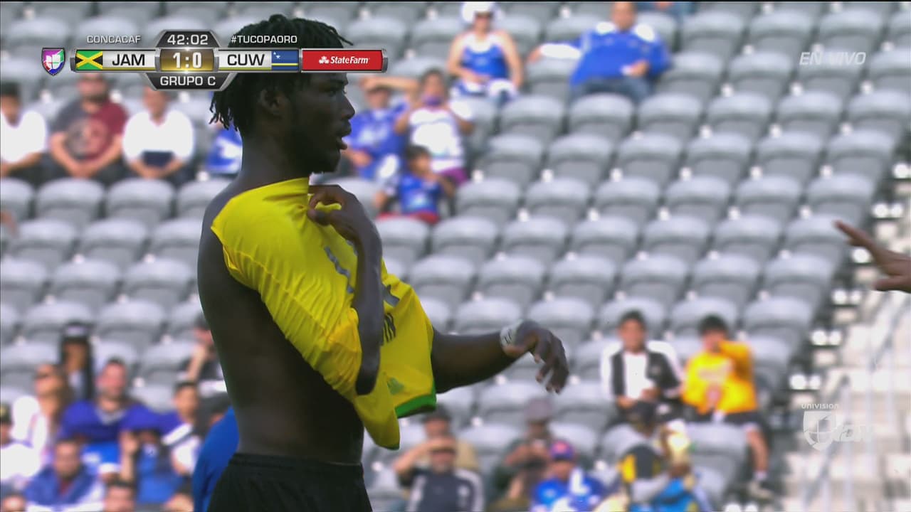 El poderoso delantero de Jamaica se molestó luego de que un defensor de Curazao lo tomó por la camiseta y luego se burló fintando con quitársela para entregársela como obsequio.