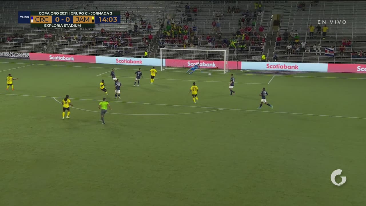 ¡Primer aviso de Jamaica! Tiro de Lawrence que pasa rozando el poste
