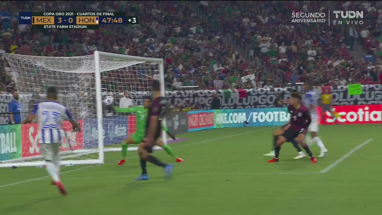 El Tri perdió el balón en la salida y el jugador catracho aprovechó para disparar potente al 45+2’.