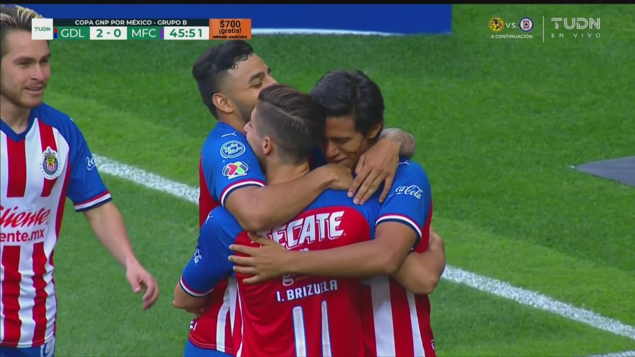 En el amanecer del complemento, al minuto 45, un centro desde la derecha de Isaác Brizuela fue suficiente para que José Juan Macías apareciera y rematara a palo contrario de Sebastián Sosa, que significaría el segundo de las Chivas.