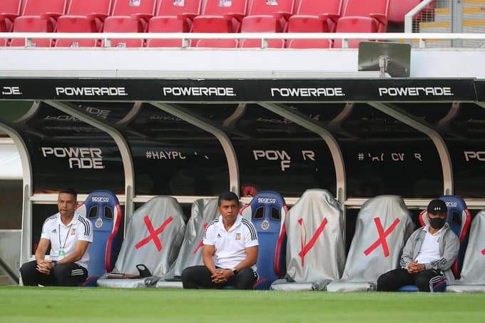 2. 'Tuca' Ferretti prefirió dirigir el juego desde el palco del Estadio Akron en el segundo tiempo.