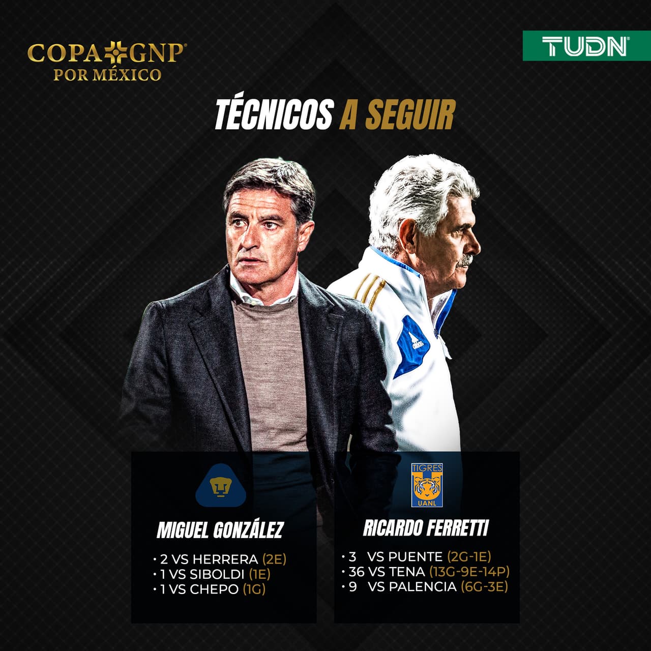 Eso sí, el técnico más ganador de la primera fase es sin duda Ricardo Ferretti de Tigres, que acumula 21 triunfos en juegos oficiales ante sus rivales de grupo en la Copa GNP por México, a cambio de 13 empates y 14 derrotas, todas ellas ante Luis Fernando Tena, el técnico de Chivas.