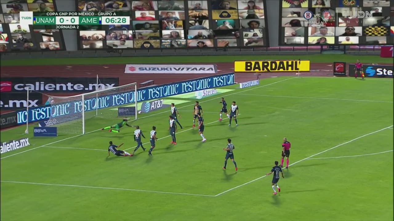 La primera de peligro fue para Pumas por conducto de Sebastián Saucedo, quien cortó hacia dentro y disparó apenas desviado del segundo poste americanista. Enseguida, pase filtrado de los universitarios y Bruno Valdez derriba a Carlos González al borde del área, el cobro de Saucedo buscaba el ángulo de Óscar Jiménez, pero Roger Martínez desvió con la cabeza.