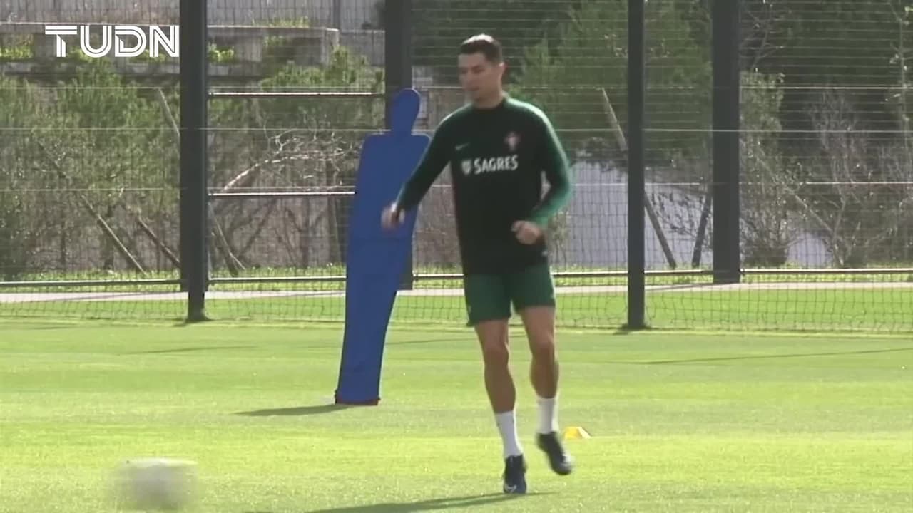 CR7 sigue práctica de Portugal desde el balcón