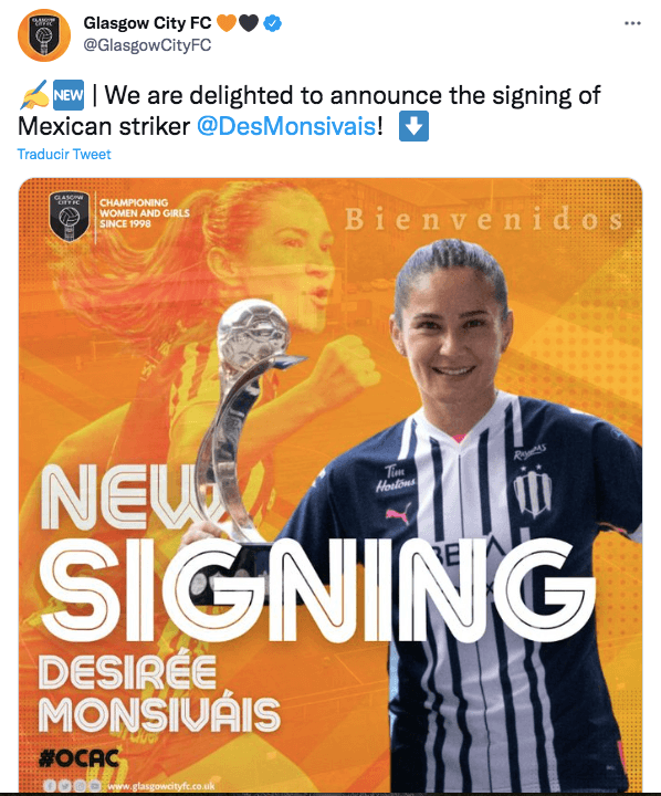 Desirée Monsivais fue anunciada como refuerzo de Glasgow City de Escocia este jueves a través de un comunicado del equipo donde le dieron la bienvenida tras su paso goleador con Rayadas en la Liga MX Femenil.