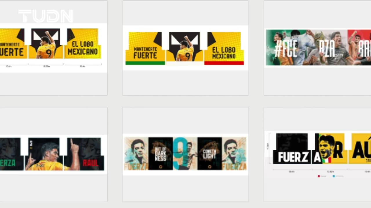 En los costados de la pancarta aparecen las palabras “Fuerza Raúl” junto al escudo de los Wolves, la bandera de México, unos lobos y a Jiménez abrazado de sus compañeros.
