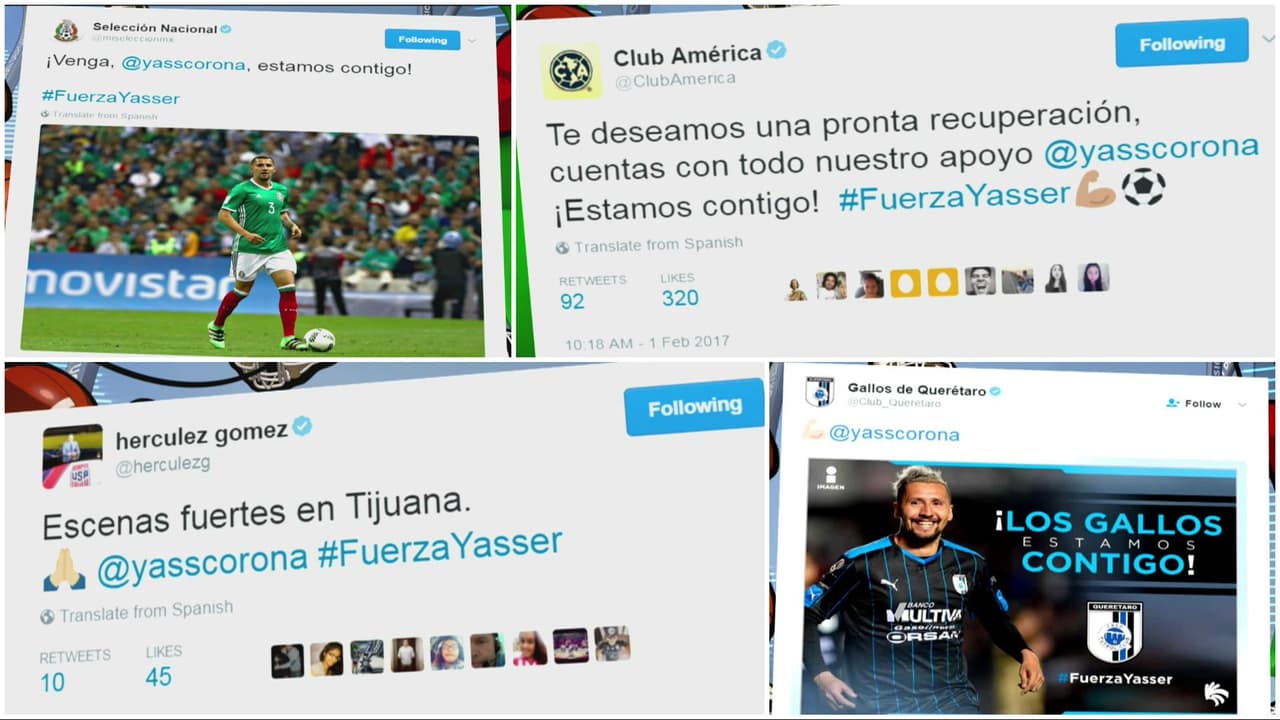 Con el tag #FuerzaYasser, clubes y jugadores de la Liga MX se unieron y le enviaron mensajes de aliento al defensa de Tijuana tras conocerse que será intervenido quirúrgicamente por el golpe en la cabeza que sufrió en el partido de Copa.