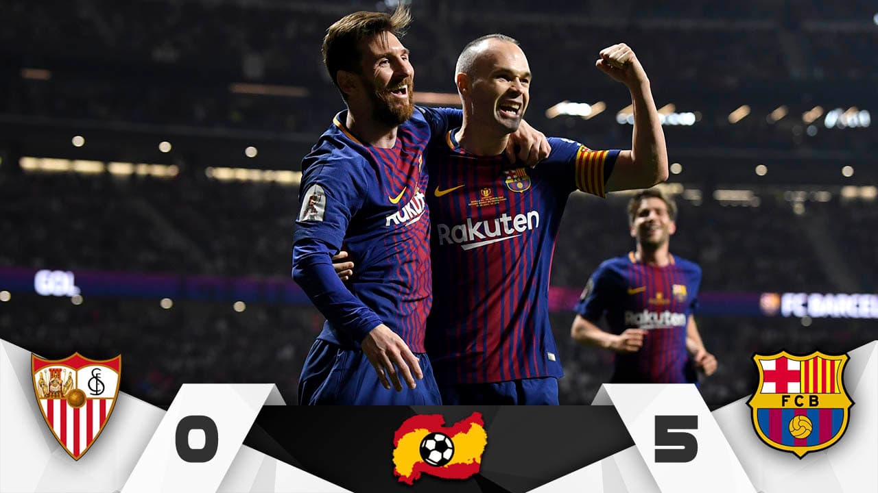 Finaliza el partido, Barcelona golea 5-0 al Sevilla y conquista su trigésimo tercer torneo.
