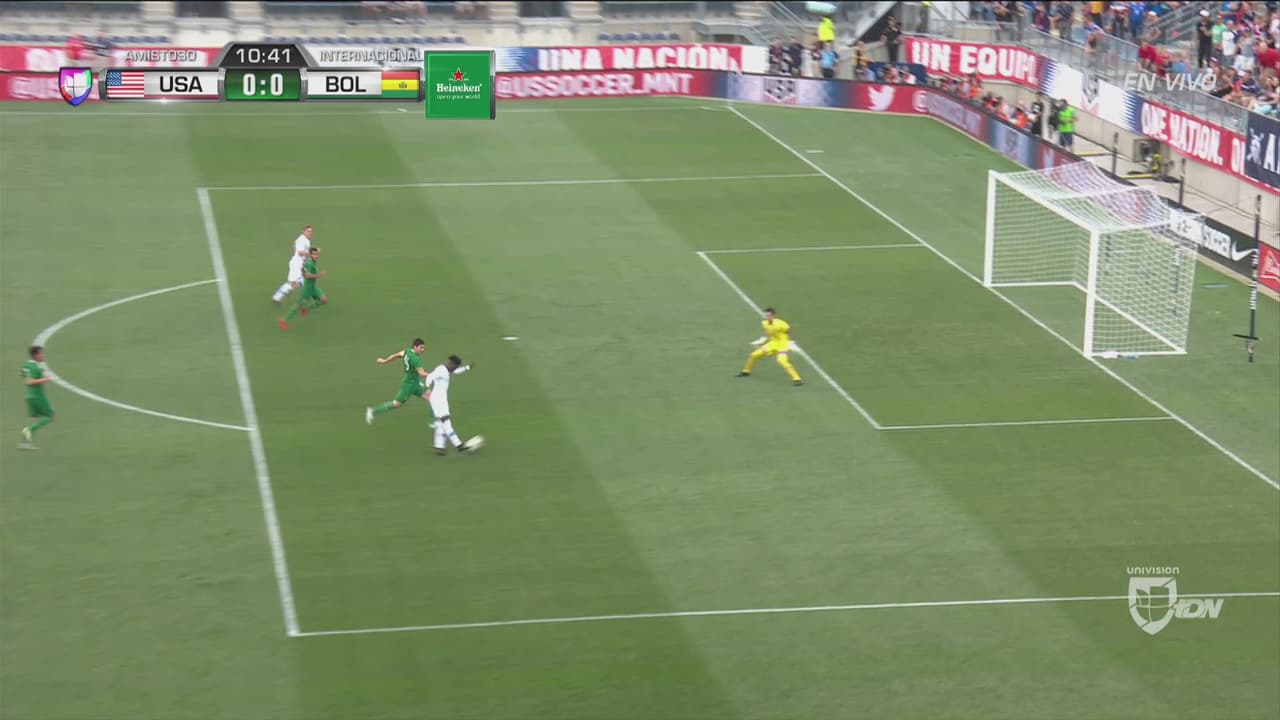 La primera parte fue un dominio total del conjunto de las barras y las estrellas. Bolivia lució incómoda y desordenada en todos los sectores de la cancha. La velocidad y la creatividad de un cuadro estadounidense con un promedio de edad de 23 años fue demasiado para los 11 de La Verde.