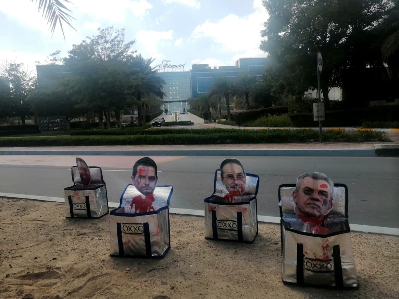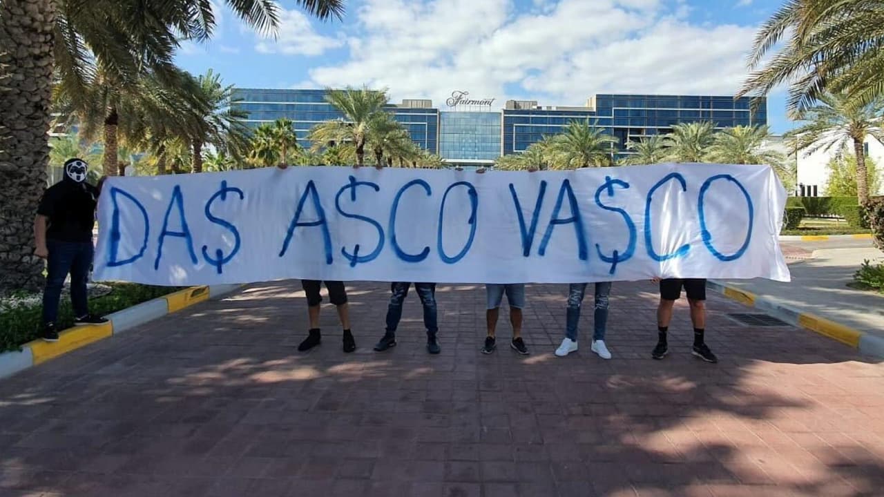 “DA$ A$CO VA$CO”, dice uno de los mensajes en una pancarta, mientras que en otro están fotos de las cabezas del entrenador Javier Aguirre y algunos directivos del club como Dulio Davino, presidente deportivo, y Carlos Vela, gerente deportivo, manchadas con sangre.