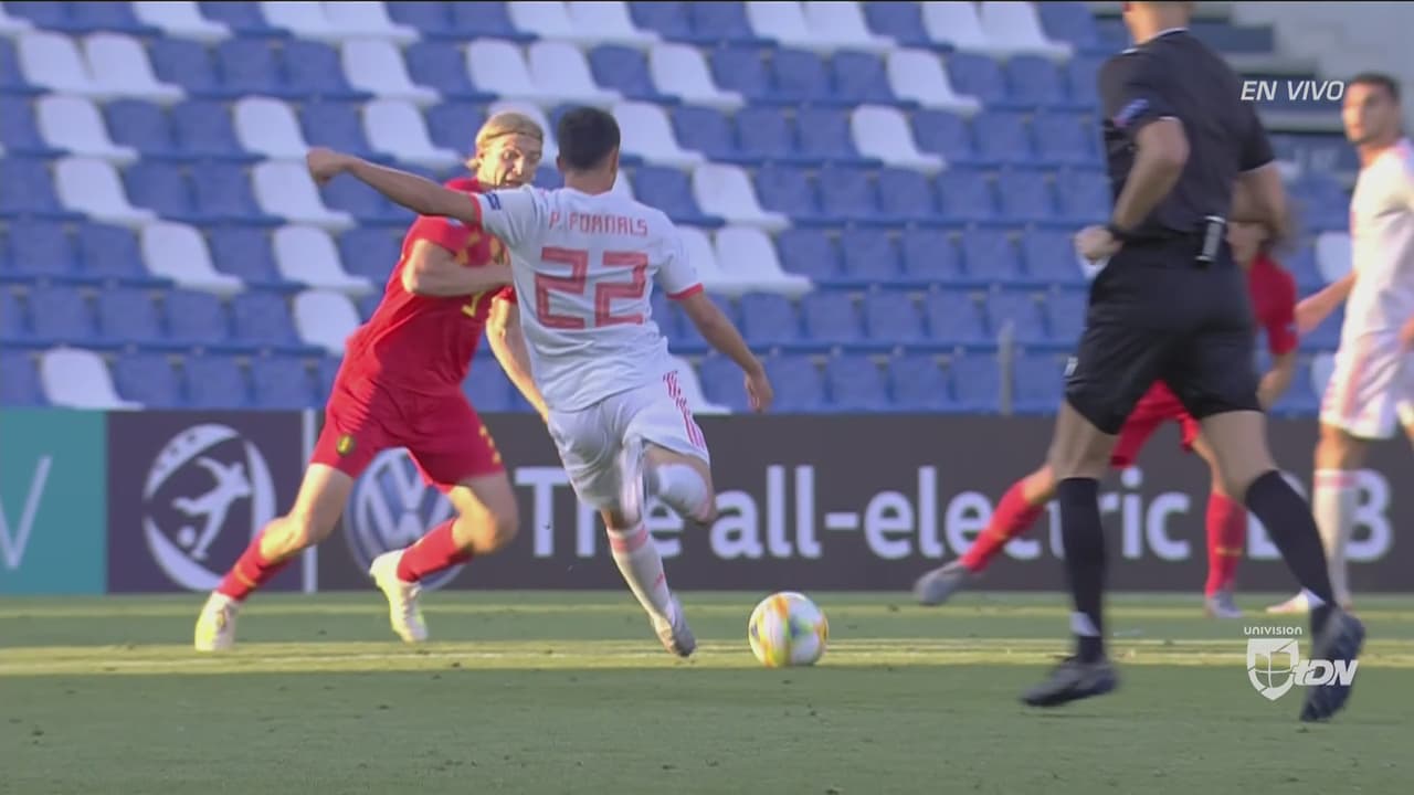El juego entonces se equilibró con llegadas por ambas partes, pero sin la efectividad que se esperaba, los equipos se desgastan, Bélgica corría a la contra y tras la pelota, pero cuando tiene espacios era peligrosa; España trataba de ser más técnica con el esférico y lo consiguió a dos minutos del final. A los 88’ minutos Pablo Fornal hizo un espectacular disparo que se fue al fondo de la red.