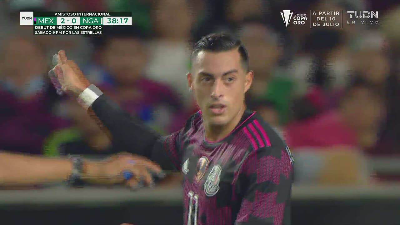 Hirving Lozano metió un centro que Rogelio prendió por encima del travesaño al 39’.