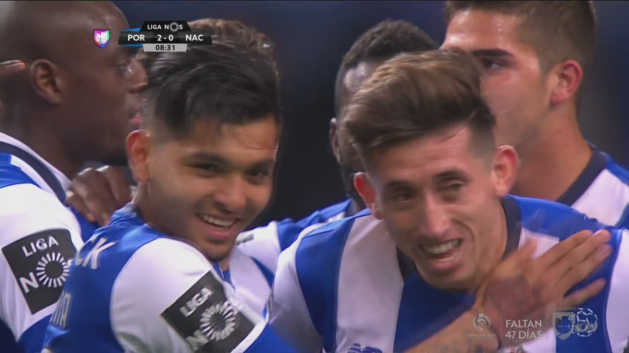 Gol a la mexicana del Porto ante el Nacional: 'Tecatito' Corona asiste a Héctor Herrera quien marca el segundo gol de los 'Dragones'.