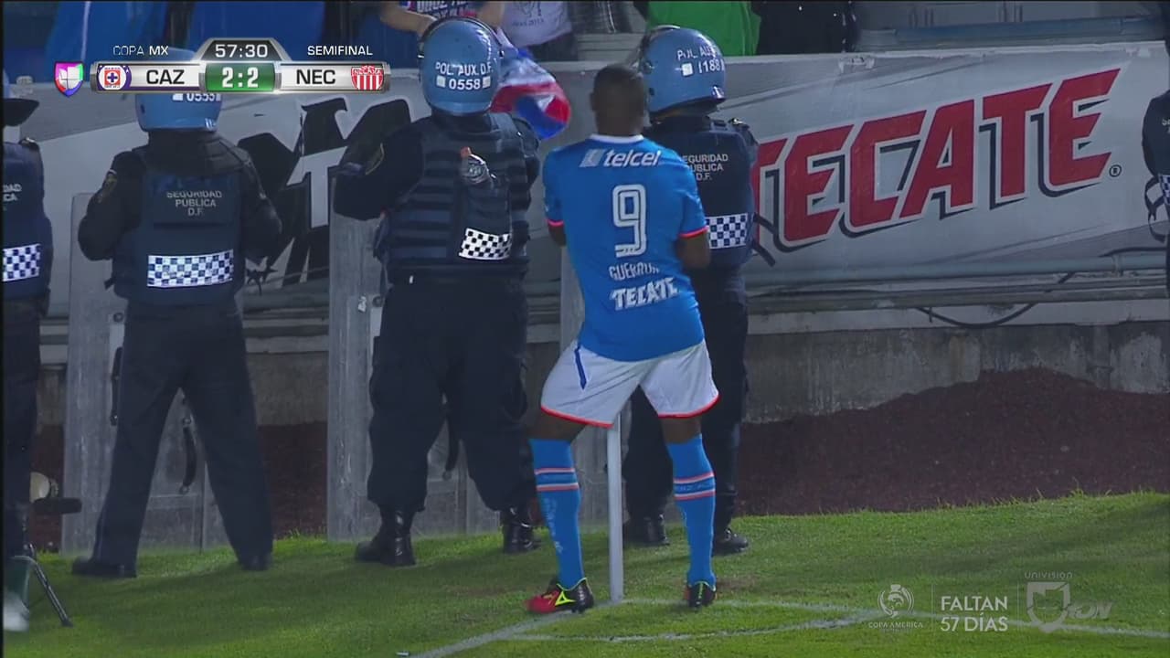 El árbitro central, Eduardo Galván, otorgó la pena máxima en favor de Cruz Azul y Joffre Guerrón no desaprovechó la oportunidad.