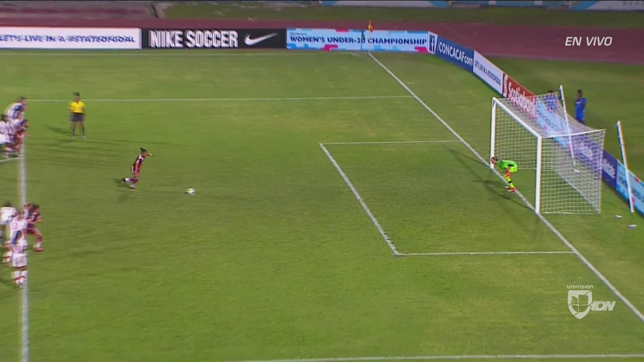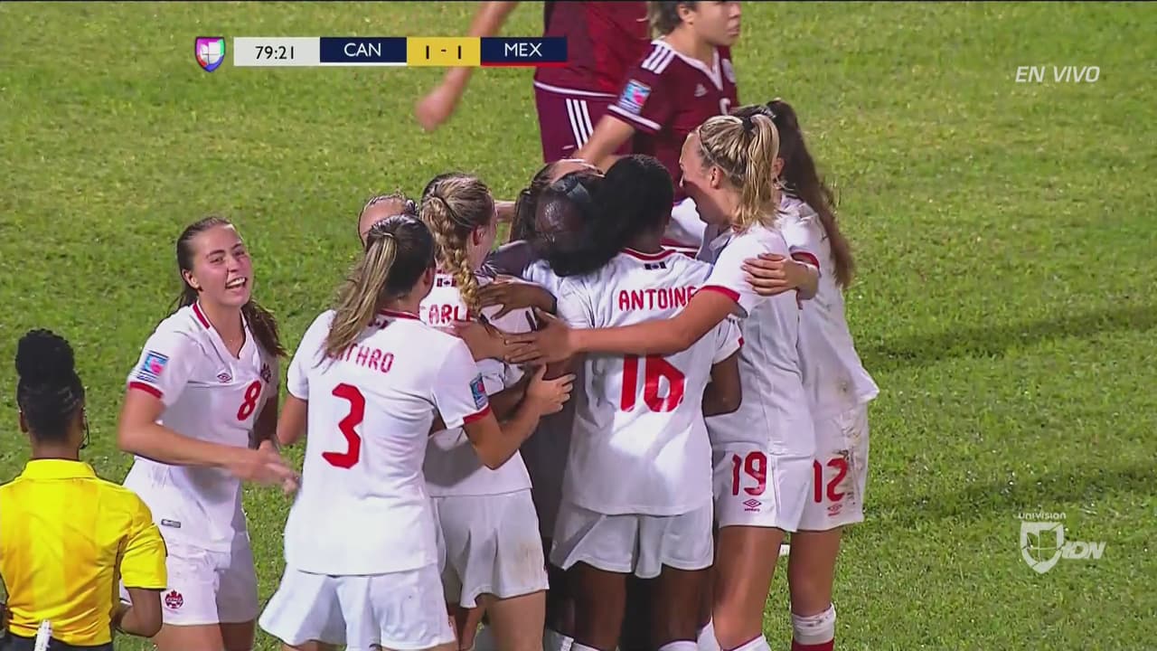 La pena máxima cobrada en contra de las candienses a momentos de la conclusión del partido le daría esperanzas al cuadro mexicano de quedarse con el pase al Mundial Femenil sin tener que recurrir al dramatismo de los penales. Sin embargo, la jugadora encargada de cobrar erró y el tiempo reglamentario quedaría 1-1.