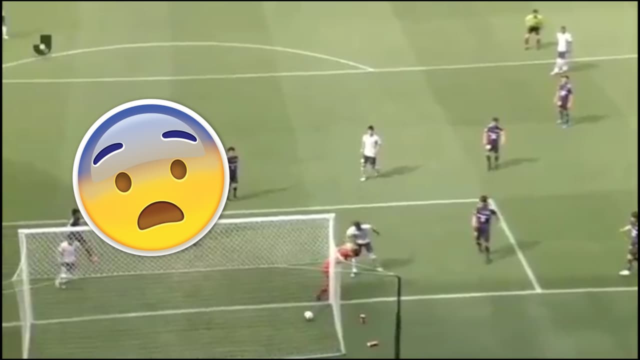 En pleno partido de la Liga de Japón, a este arquero le remata desde ángulo muy complicado, sin mucha potencia y por el piso, pero el portero se confió y el balón se le pasó entre las piernas.