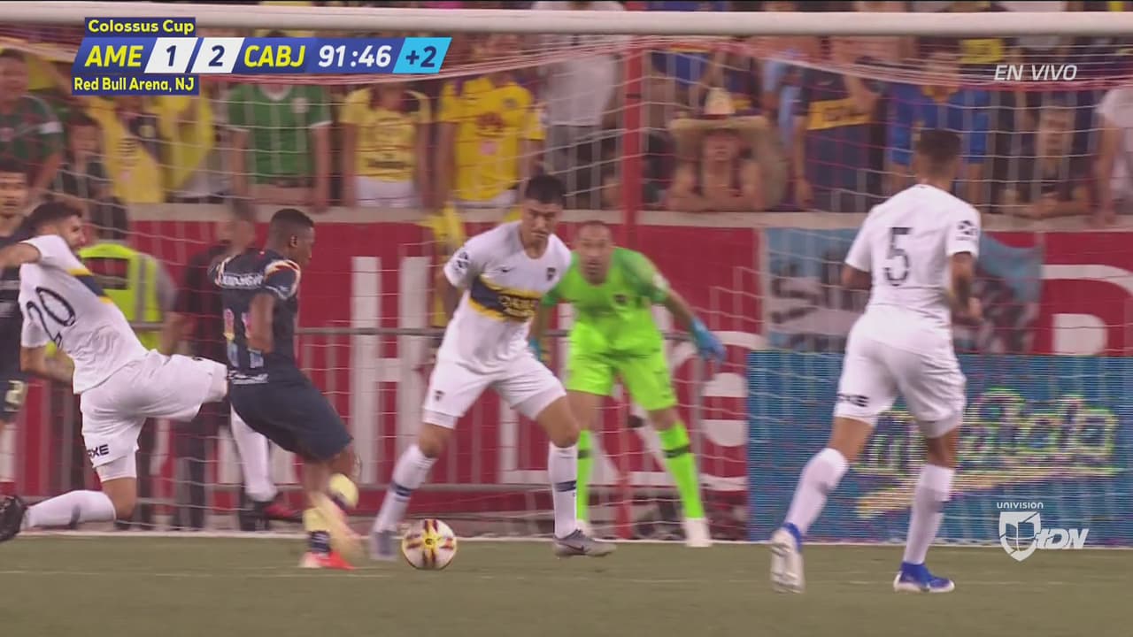 El colombiano se quitó a dos defensas desde la izquierda y probó a portería donde reaccionó bien Marcos Díaz para rescatar la victoria de Boca en New Jersey.