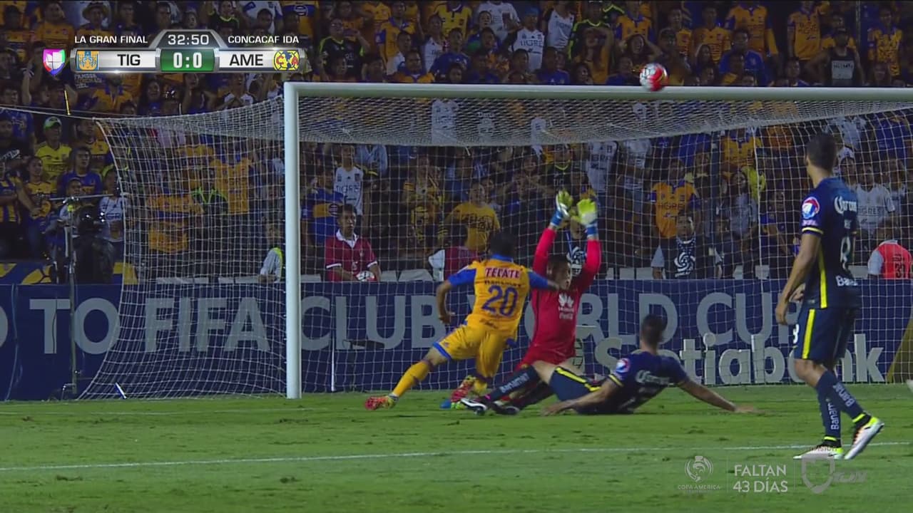 ‘El Piloto’ se abre el espacio y filtra un balón al atacante que llega forzado y falla la oportunidad de gol.