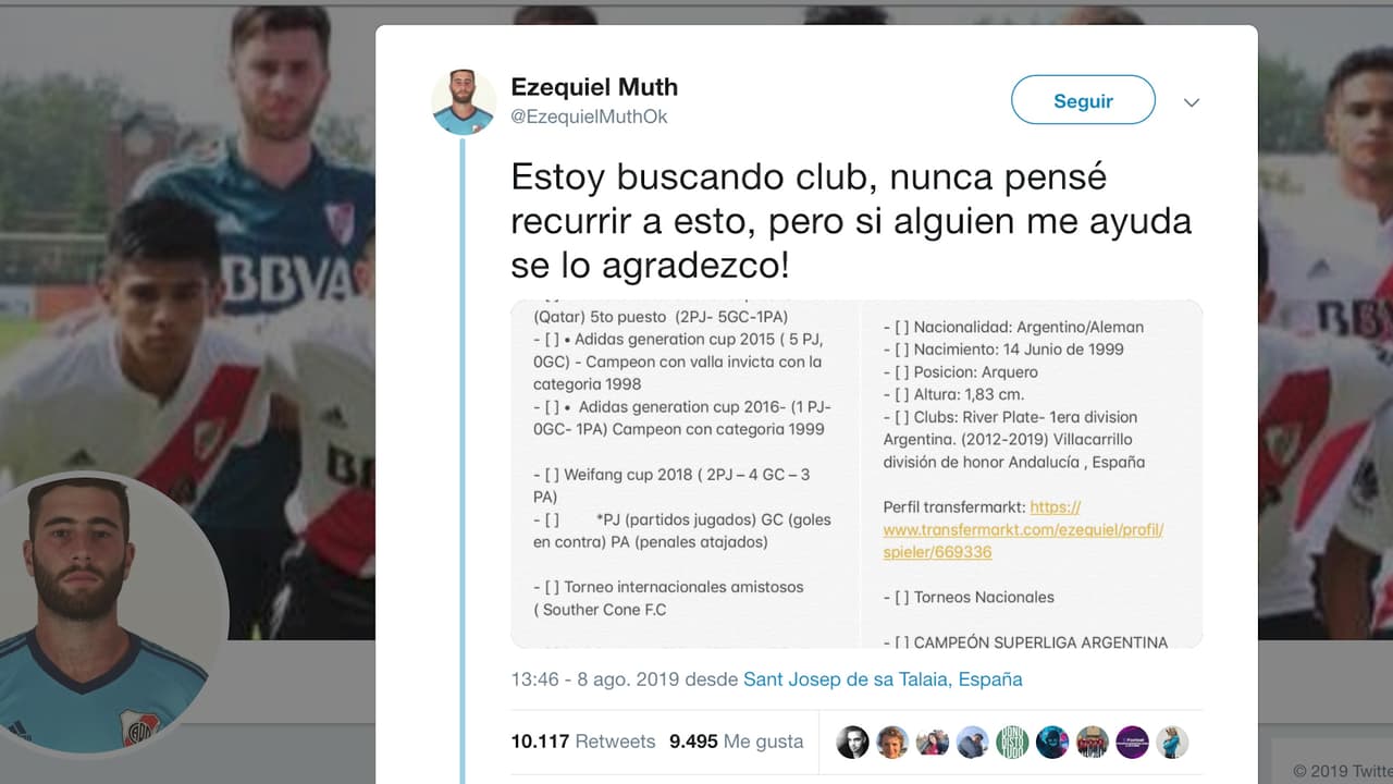 Su nombre es Ezequiel Muth y es un arquero argentino que brilló en las juveniles de los Millonarios.