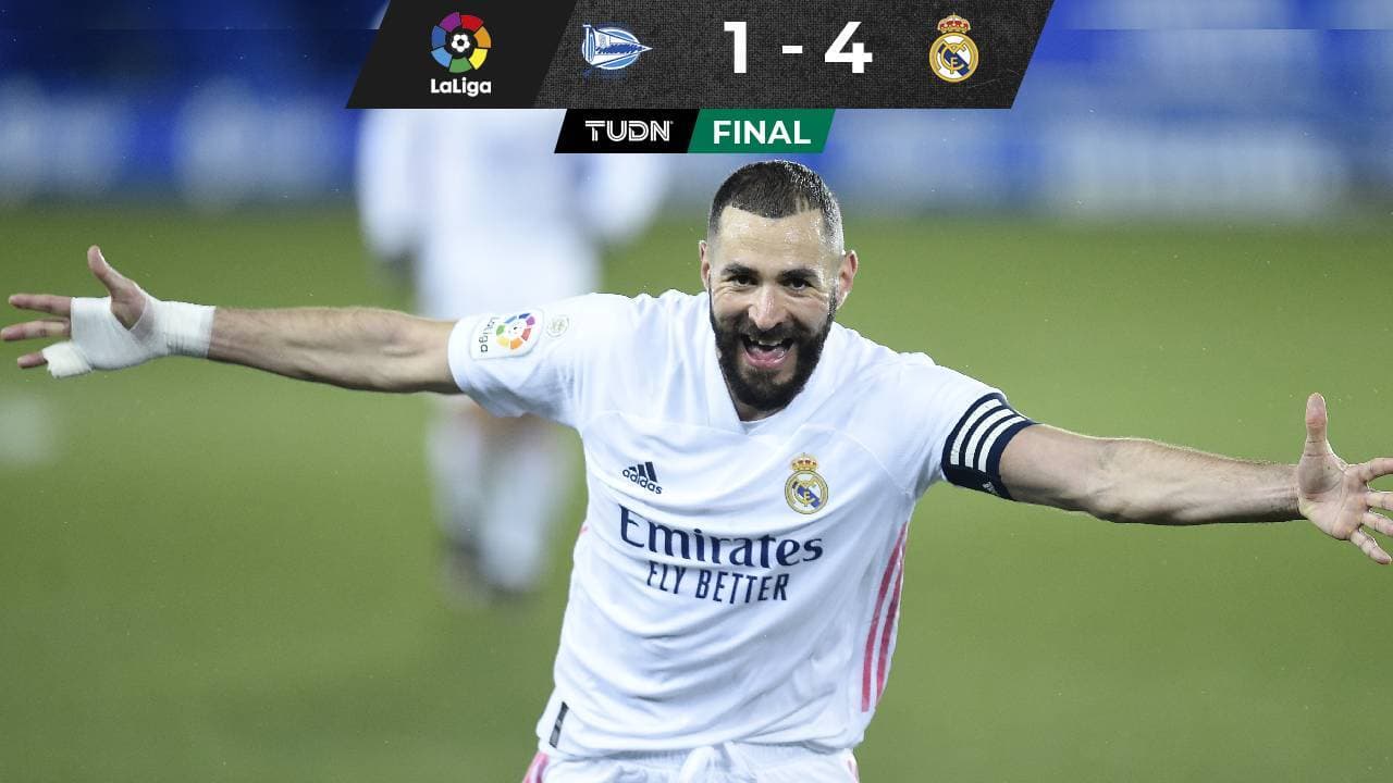 Real Madrid despedazó al Deportivo Alavés con un recital mágico de Karim Benzema, que se mandó un doblete espectacular que hizo olvidar por momentos la derrota merengue ante Alcoyano en Copa del Rey.