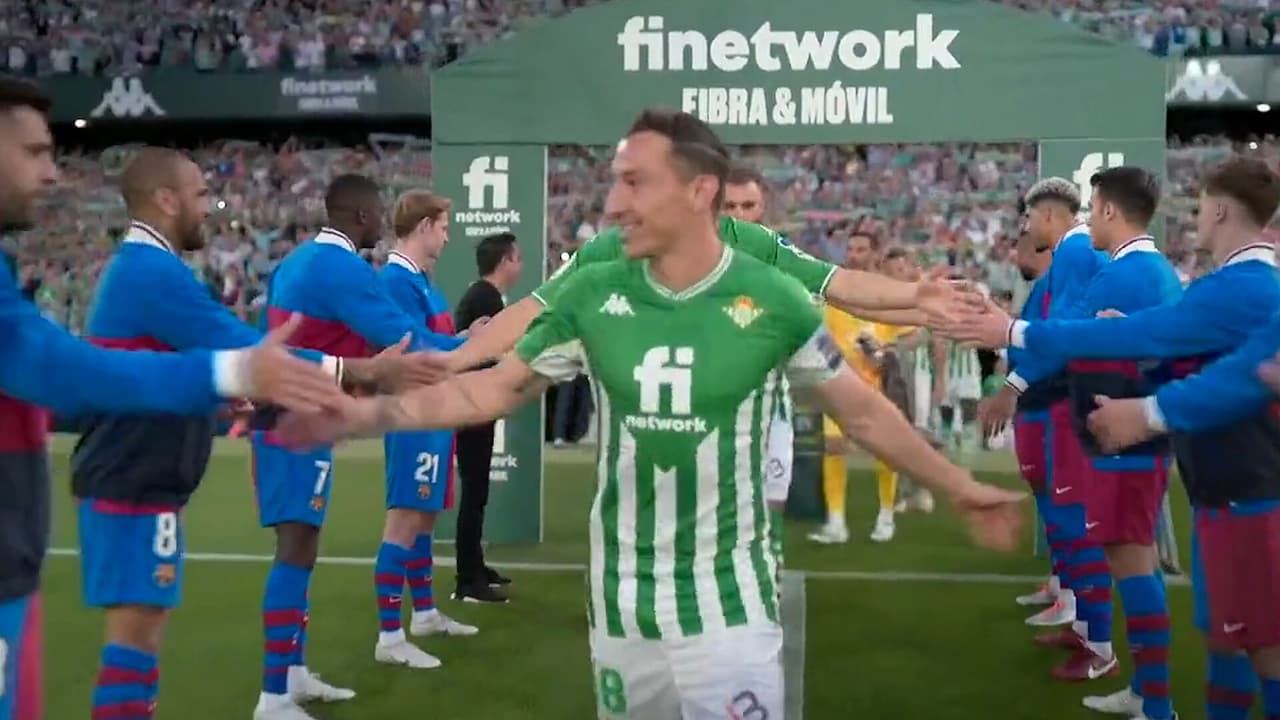Tras ganar la Copa del Rey contra el Valencia, Betis recibió homenaje por parte del Barcelona en el Benito Villamarín con Andrés Guardado a la cabeza y Diego Lainez en el repertorio de la plantilla que agradeció el gesto de su rival.
