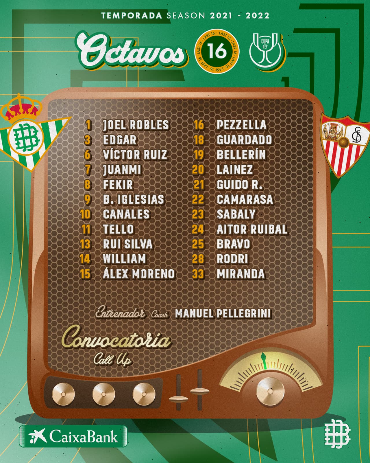 Manuel Pellegrini incluyó en la convocatoria del Betis a Lainez y a Guardado; por su parte, Julen Lopetegui, quien dejó abierta la posibilidad de poder ver a Tecatito en el campo, puede tomarlo en cuenta para la lista pendiente de publicar debido a que el Sevilla llega a este compromiso con múltiples bajas.
