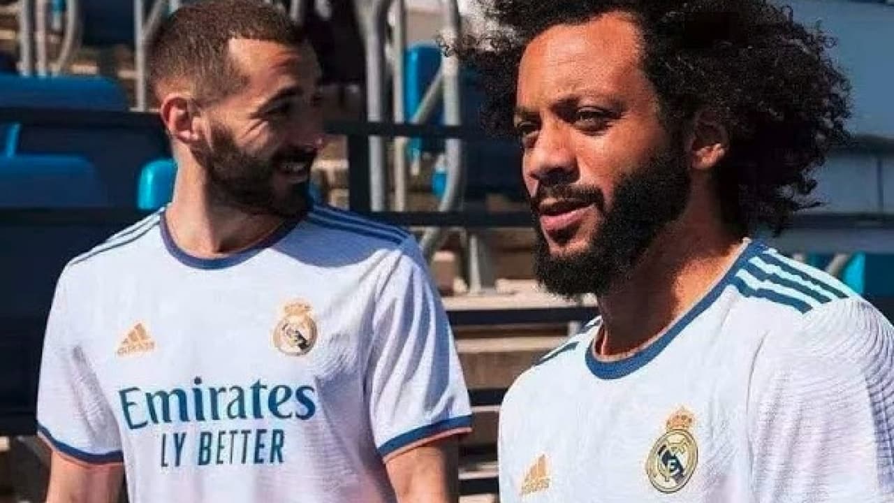 Asencio, Marcelo y Benzemá lucen la nueva camiseta del Real Madrid en las fotos que publicó Footy Headlines, un sitio especializado en uniformes de equipos a nivel mundial.